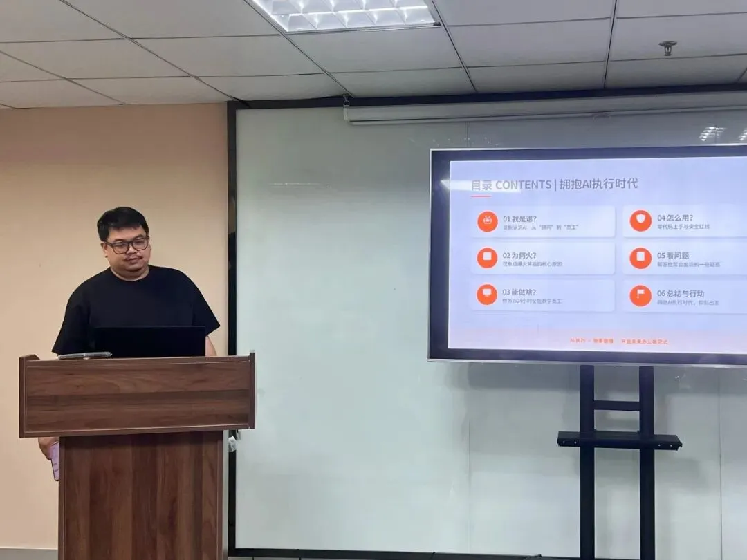 会议最后,一位特殊的新同事「龙虾」正式亮相。在人工智能话题持续火爆的当下,融媒体中心运营总监 吴学鹏带来了一场别开生面的《AI新员工「龙虾」自我介绍》分享。通过现场沉浸式演示,AI智能体「龙虾」展现了从“理解指令”到“自动执行”的能力跃迁。从技术硬门槛到人人可养“虾”,这不仅是效率革命,而是锦诚每位员工都可以拥有的“数字战友”。