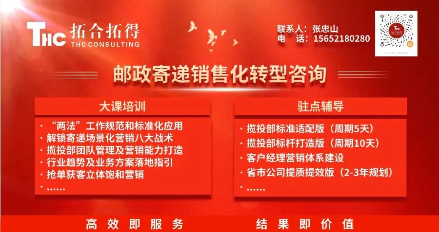 北京拓合拓得咨询将持续深耕邮政销售化转型实践,与邮政同仁携手同行、并肩作战,助力邮政寄递业务跑出增长“新时速”,书写转型发展新篇章!