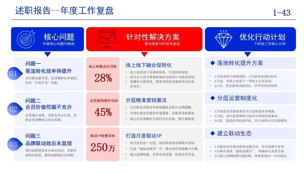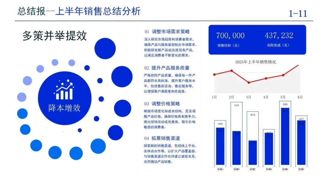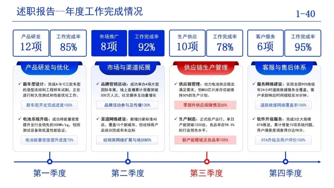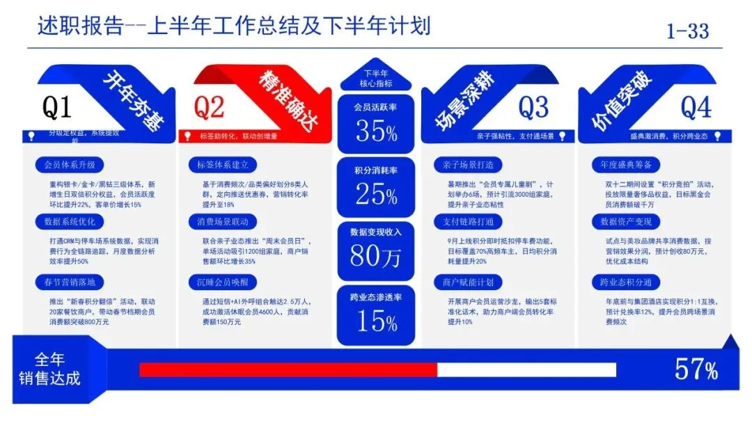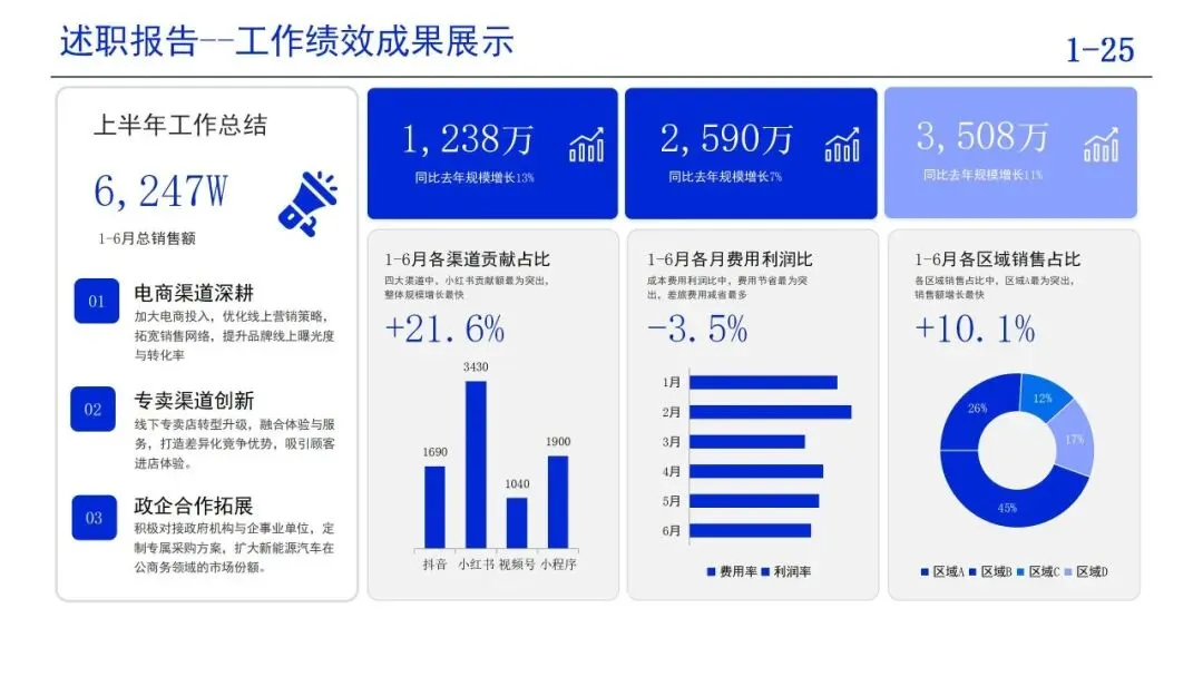 销售运营一体化的年度/半年度复盘,聚焦新能源汽车销售与全域渠道运营,以数据为核心呈现业绩成果、现存问题与未来规划,内容简洁适配手机快速阅读。