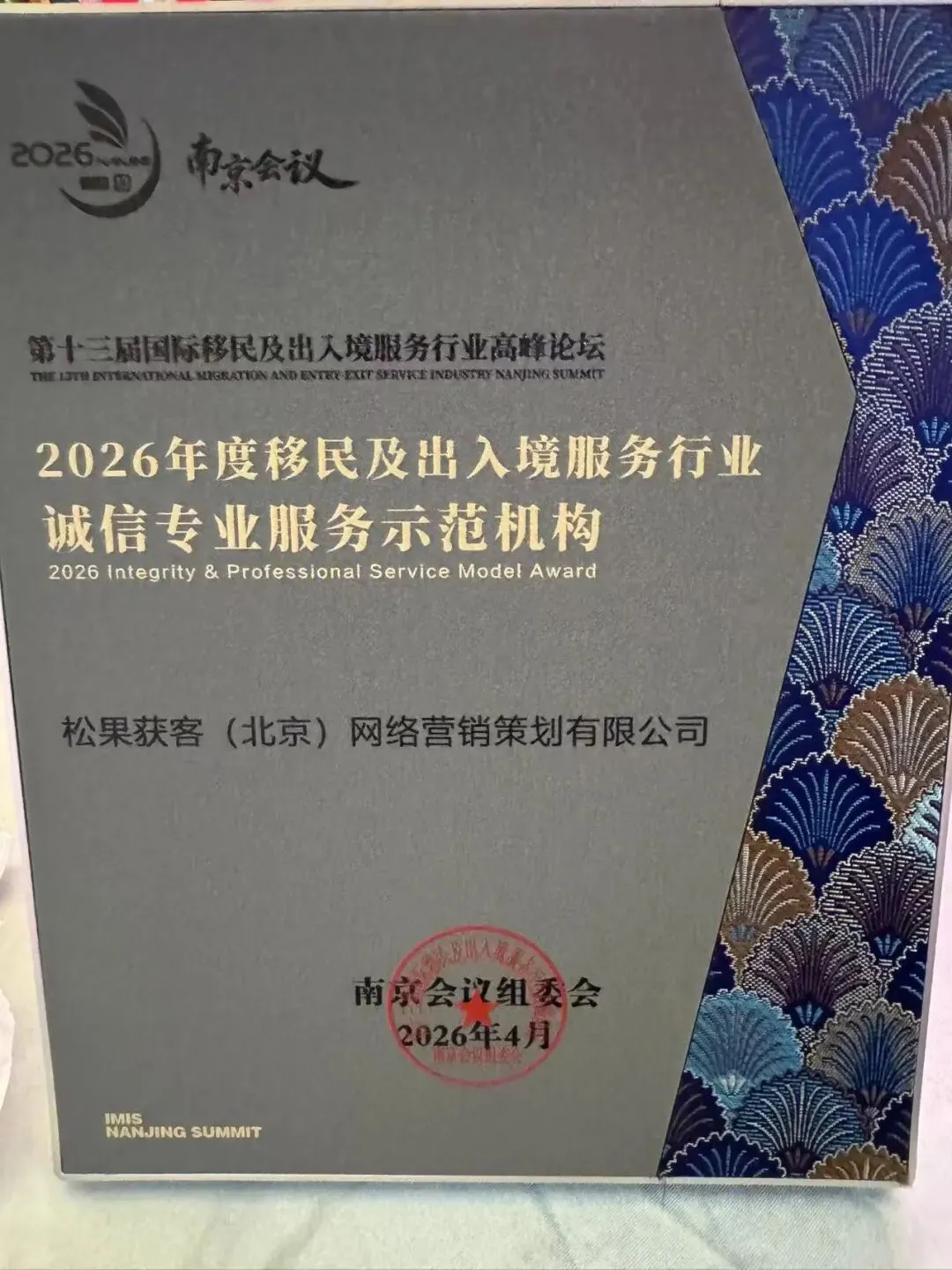 此次峰会上,松果获客成功斩获2026年度“移民及出入境服务行业诚信专业服务示范机构”称号,这一荣誉的背后,是我们多年如一日的坚守与深耕。