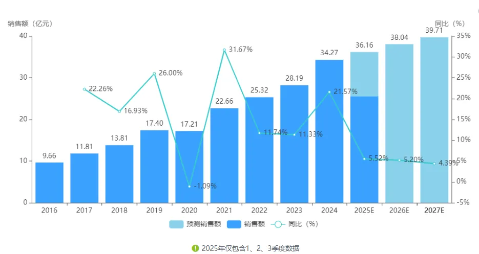 在医药市场的细分赛道中,解痉药物凭借临床刚需属性成为持续增长的热门品类,而丁溴东莨菪碱注射液更是凭借爆发式的增长速度,成为赛道中最具潜力的黄金单品,为医药招商代理带来全新的市场机遇。当前国内解痉药物整体市场规模已突破 34亿元,且保持着年均 20% 以上的高速增长,2024年同比增长率更是达到 21.57%,市场扩容趋势明确,行业发展前景广阔。这一增长背后,是庞大且持续攀升的临床需求作为坚实支撑,为解痉药物的市场发展提供了无限可能。