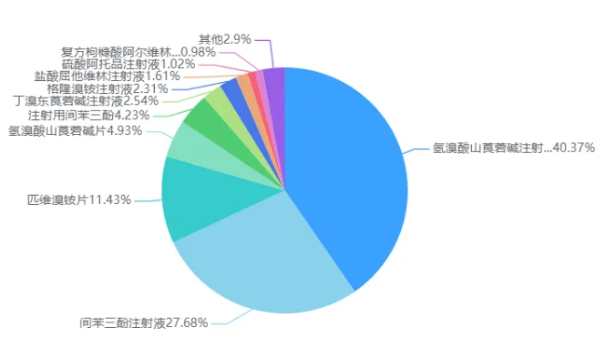 图2:2025年解痉药医疗端销售占比,来源药智网