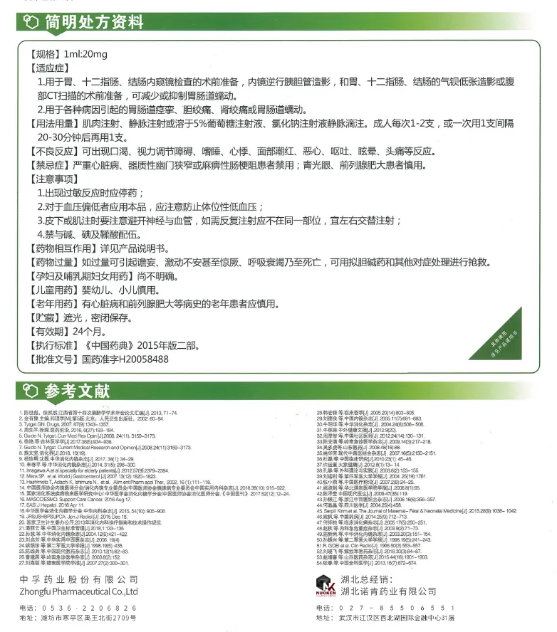 从产品临床价值来看,丁溴东莨菪碱注射液是多部权威指南共识推荐的一线用药,临床认可度高,推广难度低。2025 年《胃内镜黏膜下剥离术围手术期指南》、2022 年《胃癌影像学检查与诊断规范化流程专家共识》等多部国内外指南,均将其列为急性腹痛解痉、内镜及影像学检查术前准备的优选药物,为临床推广提供了充分的循证医学依据。其临床应用覆盖急诊科、消化科、泌尿外科、胃镜室、放射科等8大核心科室,既可缓解胃肠道、胆道、泌尿道的痉挛性疼痛,还可独家用于内镜检查、内脏造影、腹部 CT 等术前准备,是目前唯一可同时实现解痉镇痛与术前准备双重功效的解痉药物,临床不可替代性强,刚需属性突出。