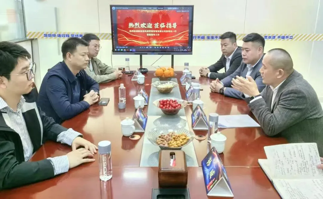 首站抵达徐州丰县核心经销商徐州晟鑫翔商贸有限公司,王浩总经理携团队详细介绍了双方合作发展历程,分享凤香荟建设、流通网点开发、餐饮深耕、团购维护、市场氛围营造及新媒体运营等实战经验。张勇对其精细化运营成果给予充分肯定,并表示要持续发挥丰县市场基础扎实的优势,加快全价位产品布局,提高市场占有率。