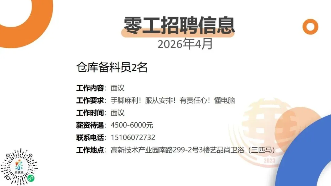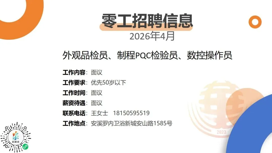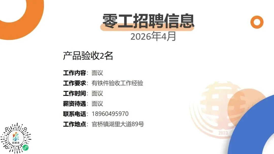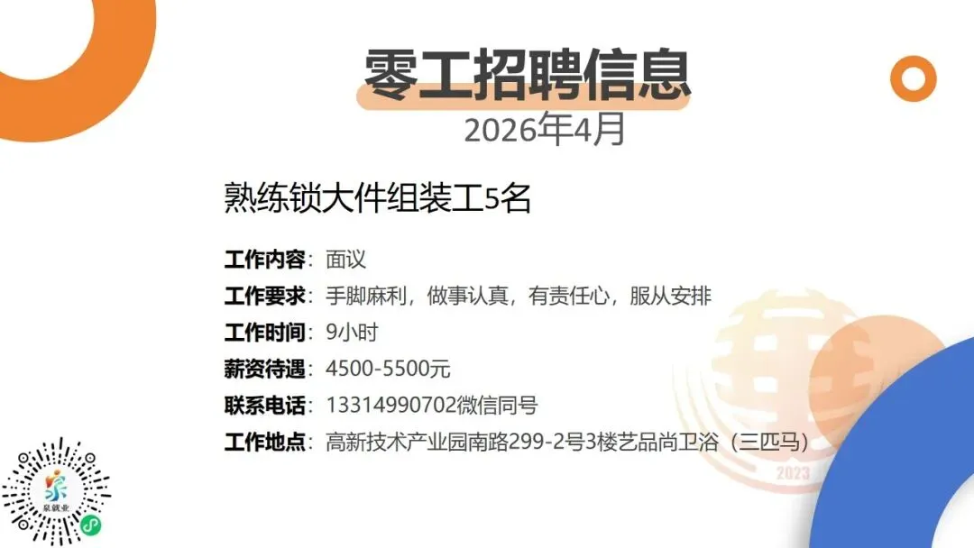 我们每周更新一次招聘信息,欢迎广大需要招聘、求职的商家企业和个人到华阳社区零工市场,我们将免费为您发布招聘、求职信息,也可直接与我们工作人员联系: