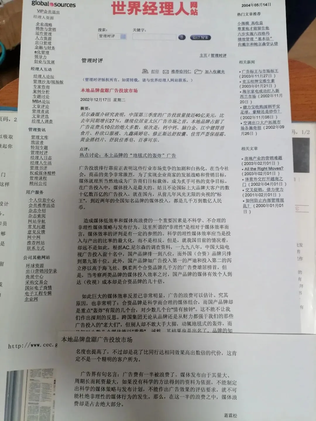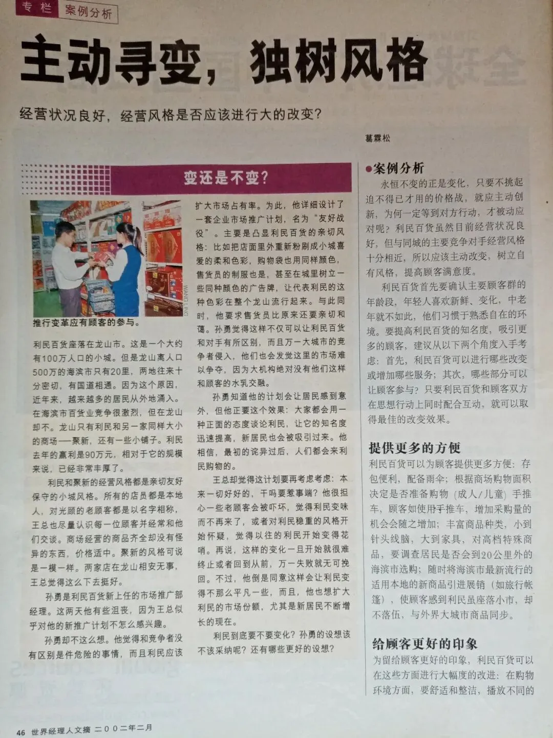 2、“纳伟仕集团”管理与营销诊断、战略规划(2008年9月我面告厉天福董事长,消费类电子我看好智能手持终端产品)、流程设计与管理、运营监控、风险分析/控制,中国市场两大产业品牌营销、网店运营管理及连锁专卖店方案(挂职“顾问兼营销副总裁”);