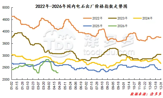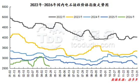 多多数据测算,4月24日国内电石现货出厂价格指数为2282.00,跌0.00,幅度0.00%,接收价格指数为2627.92,跌0.00,幅度0.00%。