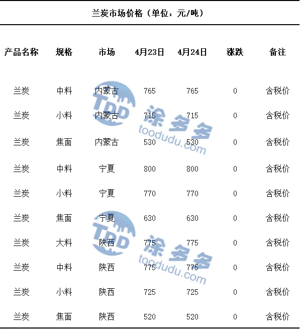 据涂多多数据测算,4月24日国内兰炭价格指数为760.71,跌0.00,幅度0.00%。兰炭指数下跌。