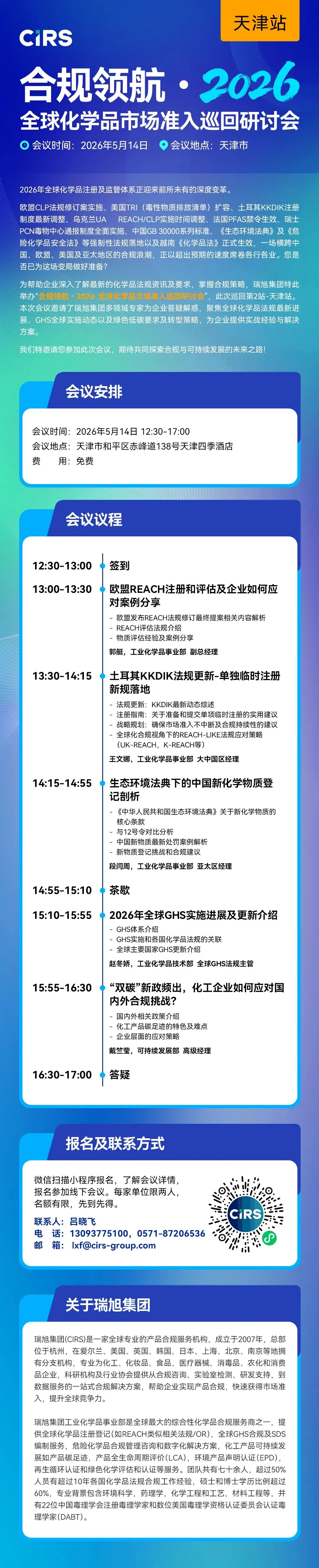 合规领航・2026 全球化学品市场准入巡回研讨会—天津站