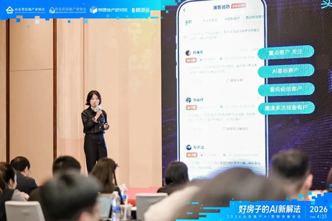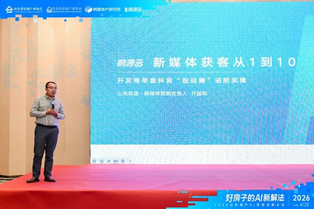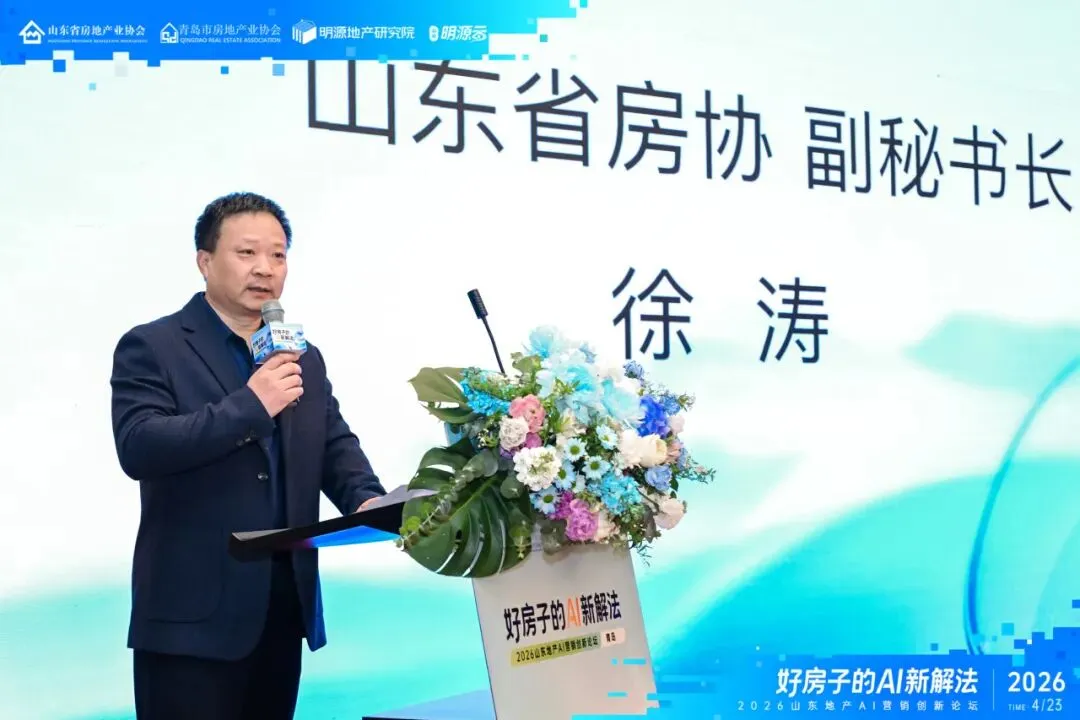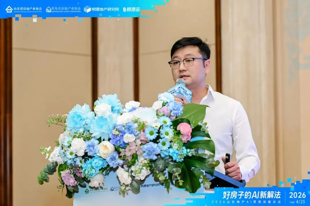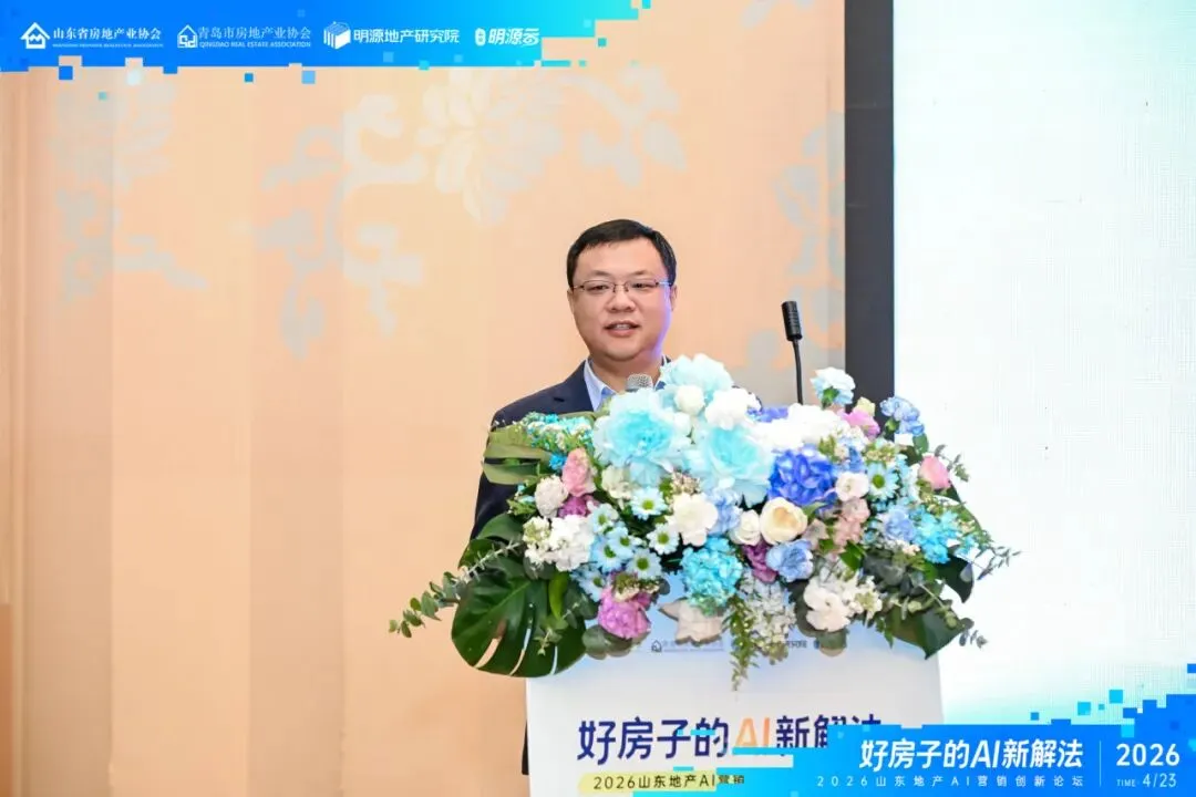 4月23日下午,由山东省房地产业协会、青岛市房地产业协会、明源地产研究院联合主办,山东明源云承办的“2026山东地产AI营销创新论坛”在青岛成功举行。山东省房地产业协会副秘书长徐涛,山东明源云副总裁、明源地产研究院副院长王良为本次论坛致辞。