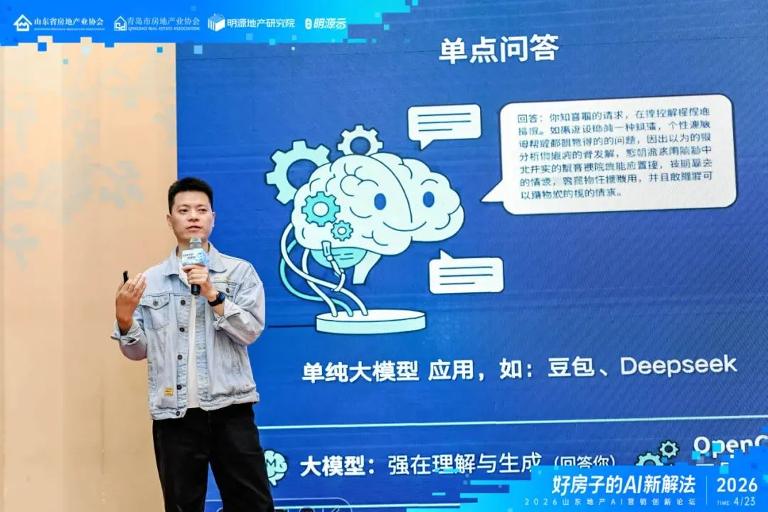 他指出,当前传统营销模式已难以为继,获客难、成本高、转化低等痛点制约着企业发展,而AI技术的崛起为地产营销破局注入新动能,开启了“科技赋能营销”的全新赛道。他表示,山东明源始终秉持“赋能行业、共创共赢”的初心,希望以本次峰会为契机,让大家大胆拥抱AI变革、深耕营销创新,以科技为翼、以服务为本,共同推动房地产营销迈向精准化、智能化、高品质的全新发展阶段。