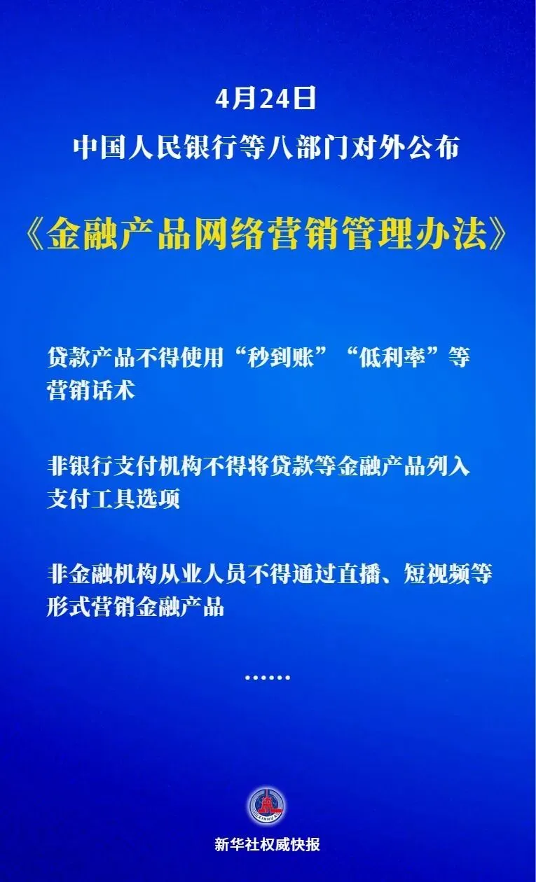 贷款产品不得使用“秒到账”等营销话术,非金融机构从业人员不得通过直播等形式金融产品……八部门发布新规,9月30日起实施
