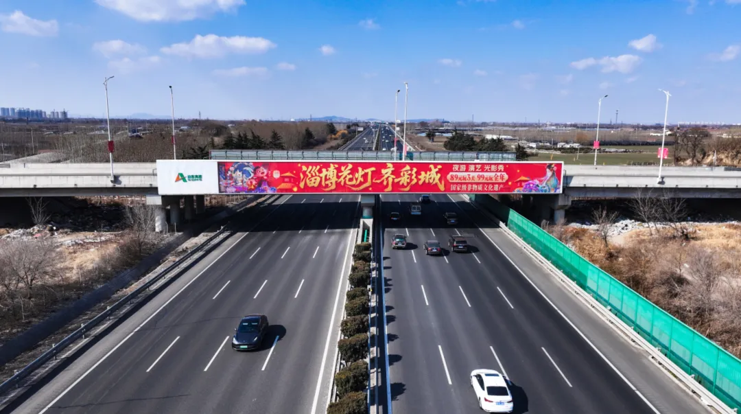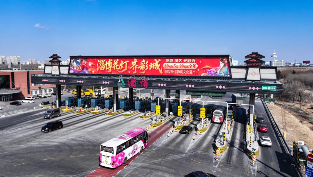 淄博花灯齐彩城投放高速收费站顶棚媒体