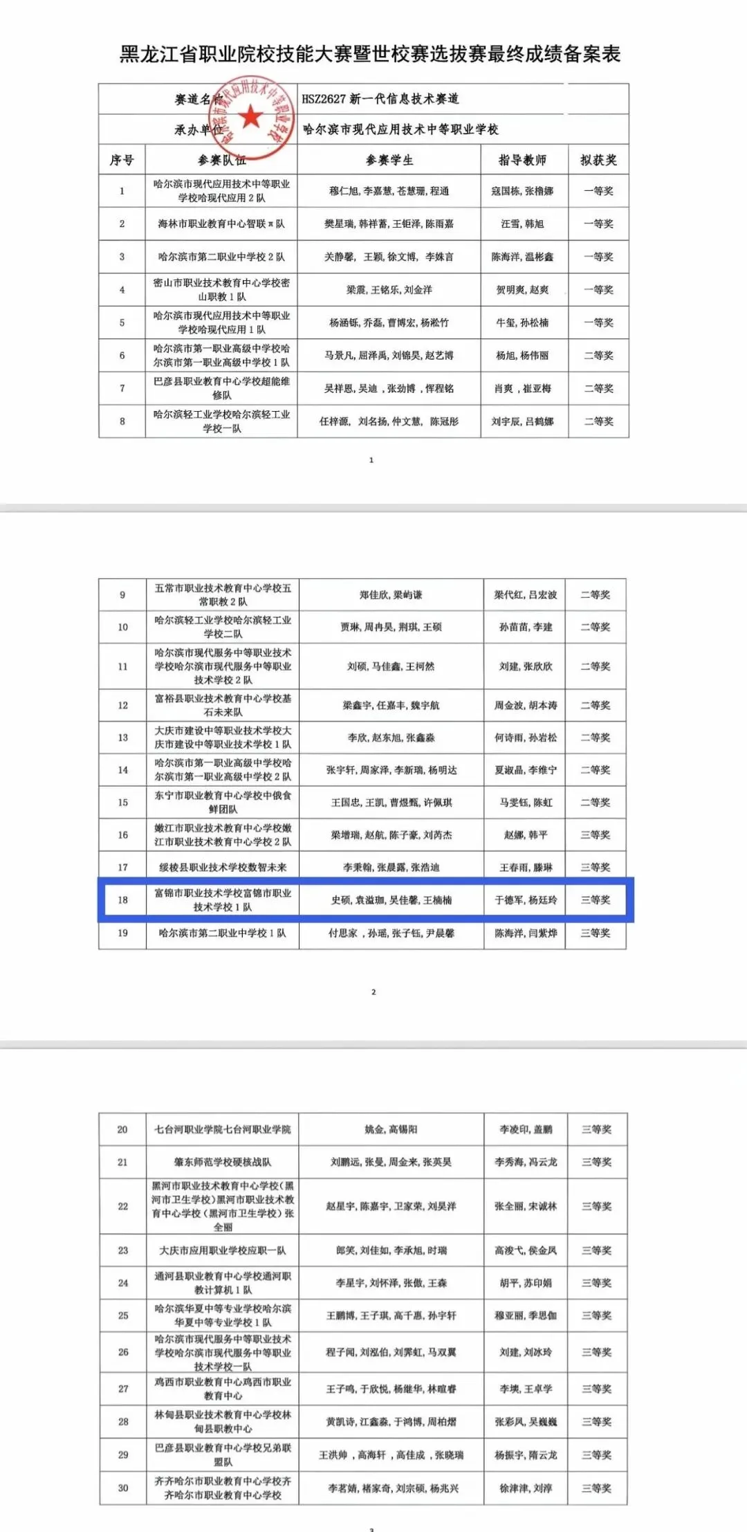 【喜报】祝贺富锦市职业技术学校计算机专业参加2026年黑龙江省职业院校大赛暨世校赛选拔赛获奖
