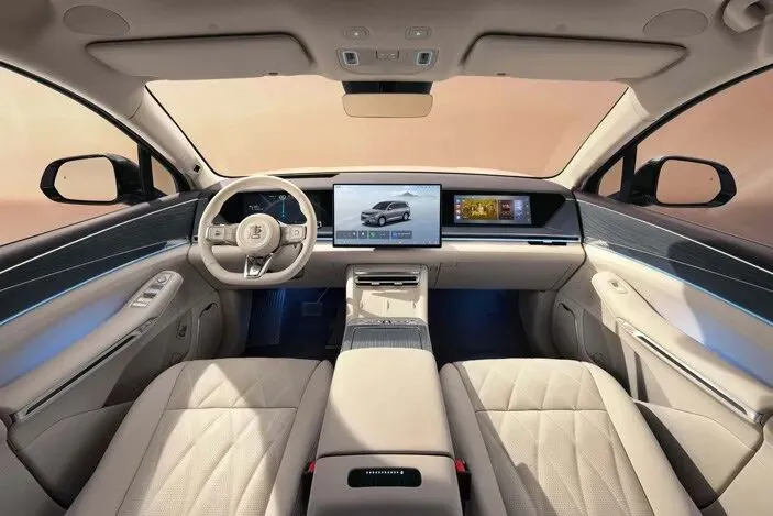 舒适配置上,前排双零重力座椅与二排双零压航空座椅均标配通风、加热及10点式按摩。二排靠背最大可舒展至146°,配合70°电动腿托,打造极致零压坐姿。天空之镜中空夹层天幕面积达2.53平方米,不仅100%隔绝紫外线,更为头部多挤出30mm空间,车内噪音降低3.9分贝。全车还搭载法国帝瓦雷7.1.4声道27扬声器音响系统,让旅途如置身音乐厅。