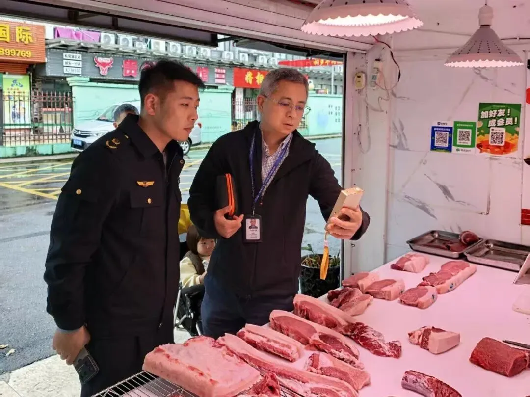 4月22日,食品生产流通科联合武康所对市场生鲜灯进行检查。