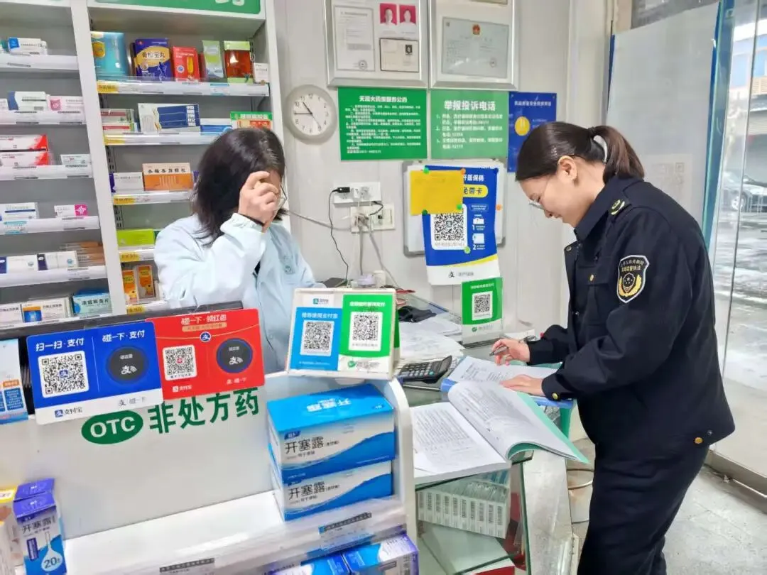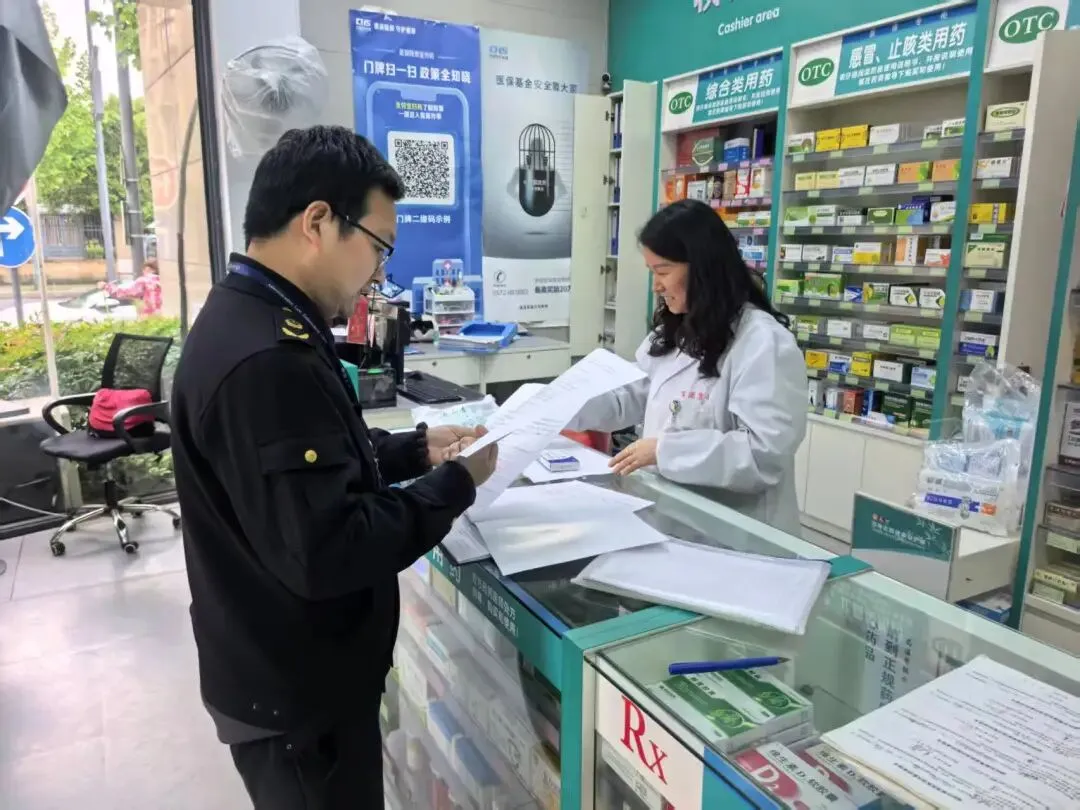 4月22日,新市分局开展药店检查。