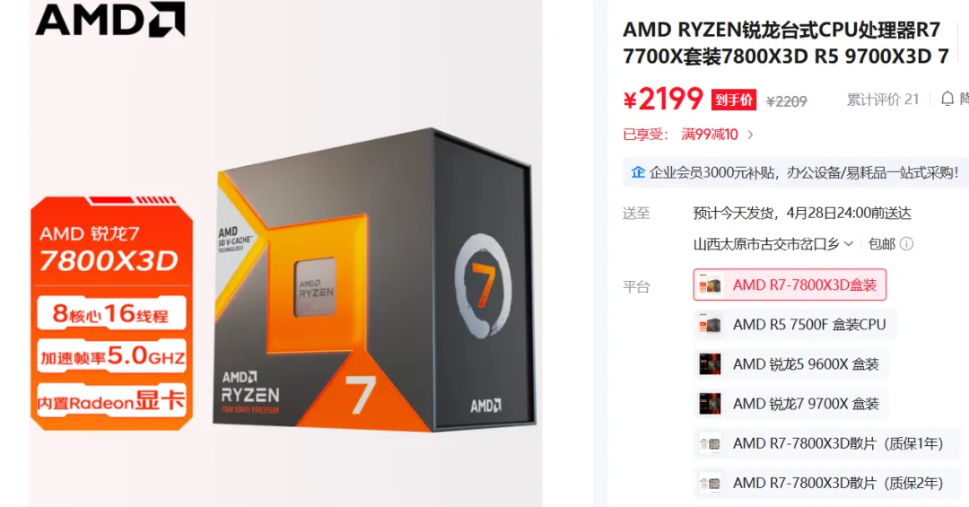 以Ryzen 7 7800X3D为例,其散片价格在3月底曾一度回落至2200元附近,较2026年1月高位跌幅达25%,甚至接近首发价水平,成为本次降价潮中最受关注的型号之一。除了这款热门型号,Ryzen 5 7600X、Ryzen 9 7900X等中高端CPU,以及RX 7800 XT、RX 7900 XT等显卡型号,价格均有不同程度的下调:其中RX 7900 XT国内电商均价已跌破6500元,较2026年1月高点回落约20%,甚至低于发售价;Ryzen 5 7600X散片价格跌至1200元区间,跌幅约18%。面对这一波“降价潮”,消费者既不应盲目跟风,也无需过度恐慌。这究竟是市场周期的必然,还是产品隐患的暴露?本文将为你拆解背后的四大逻辑。
