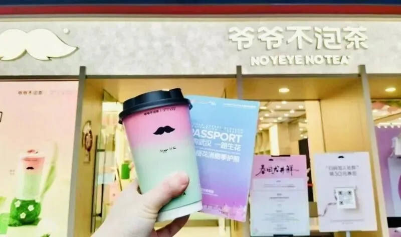 此外,爷爷不泡茶的门店场景还注重“地域特色与品牌调性的融合”。其门店融入了湖北地域元素,无论是武汉昙华林景区主题店的江城特色装饰,还是春运期间武汉站门店的温情布置,都让门店成为“地域文化的载体”。