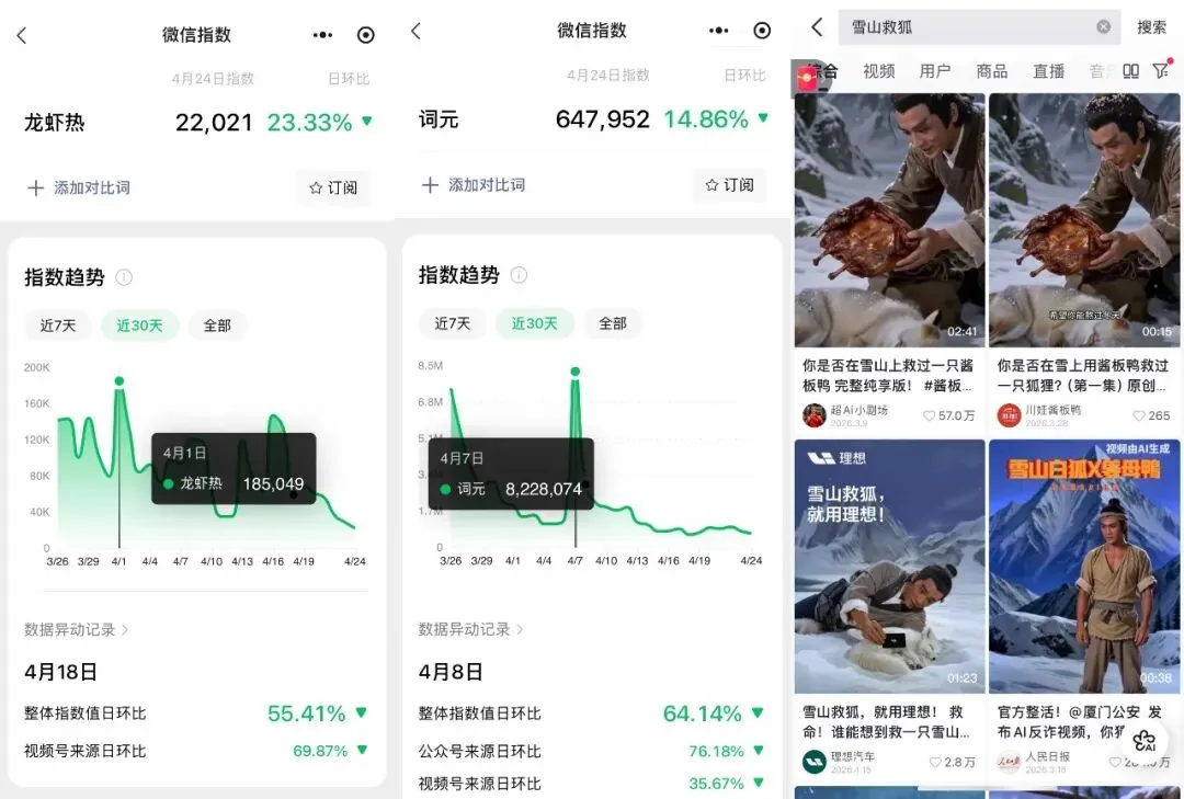 春节之后,AI风头无限,从“龙虾热”到“词元”,再到“雪山救狐”主题短片赢得50亿+播放,在创作门槛不断被拉低的同时,也看见了Ai营销能够掀起讨论热潮的更多可能。