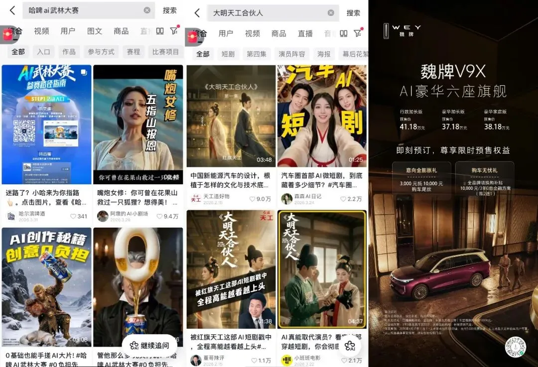 Ai助力品牌创意实现刷屏,这并不是孤例,哈啤Ai武林大赛,0基础也能手搓Ai大片;红旗汽车上线的Ai微短剧《大明天工合伙人》,把中国智造的传承表达得淋漓尽致;魏牌V9X更是将Ai概念与产品理念融合,提炼出的产品卖点,新颖又有科技感……这股因AI驱动的内容创作、产品理念正在席卷全网。因为Ai的涌入,让内容创作打破了技术的限定,成了人人可参与。