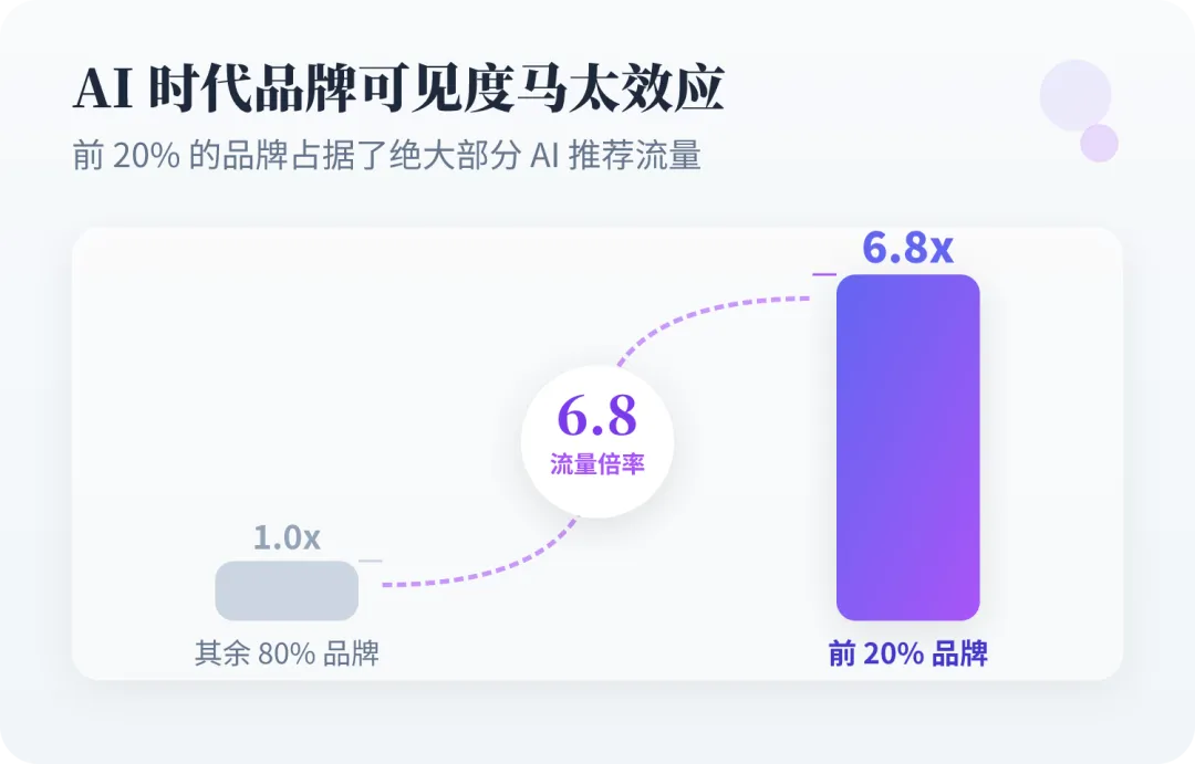 据答案锦囊GEO服务后台数据,AI可见度排名前20%的品牌,获得的AI推荐流量是其余品牌的6.8倍(📌答案锦囊内部运营数据,三级信源)。