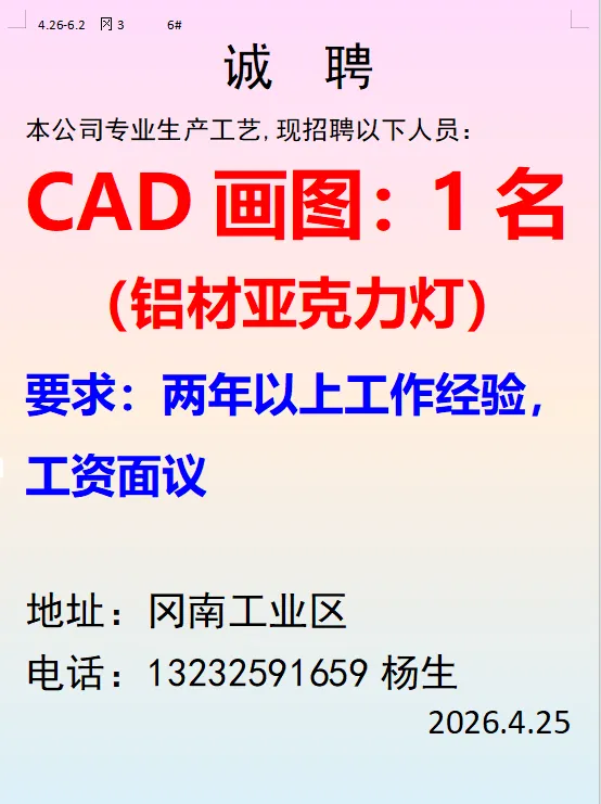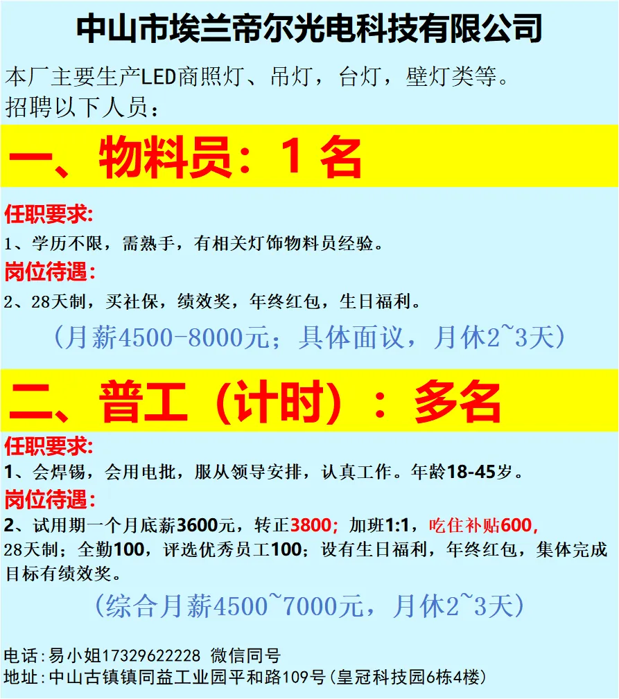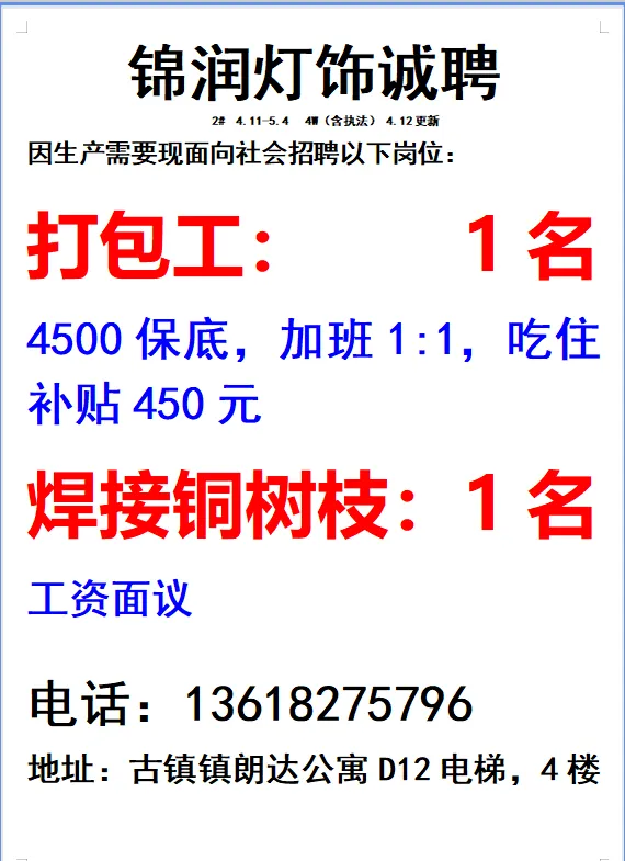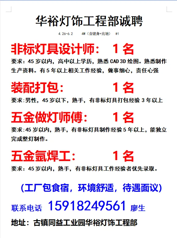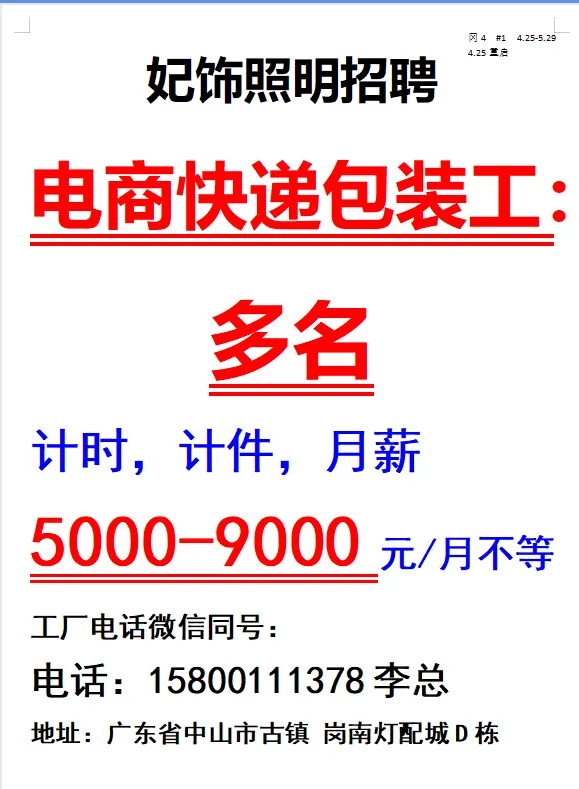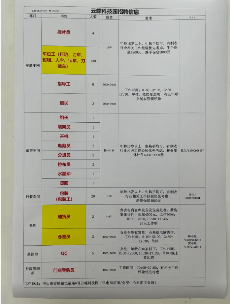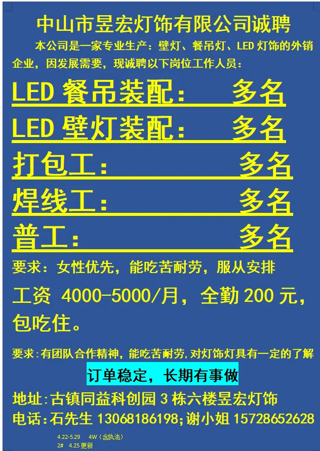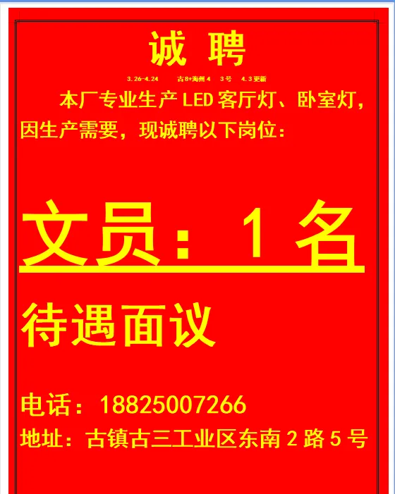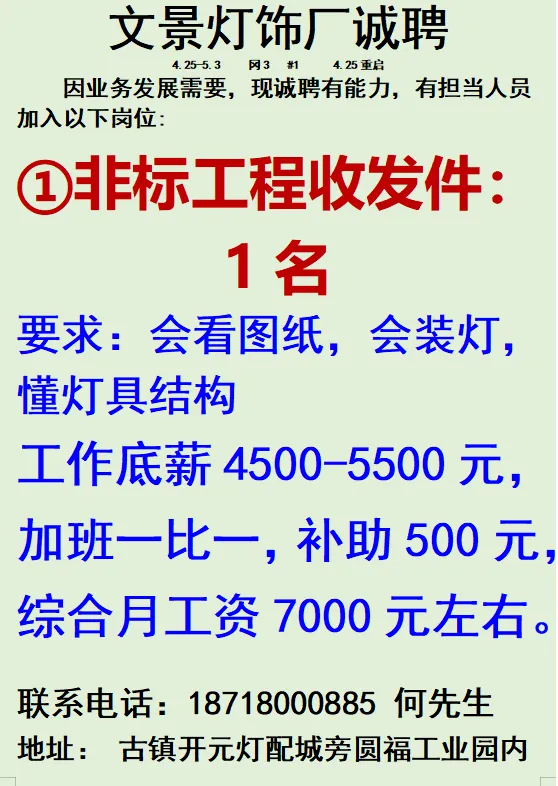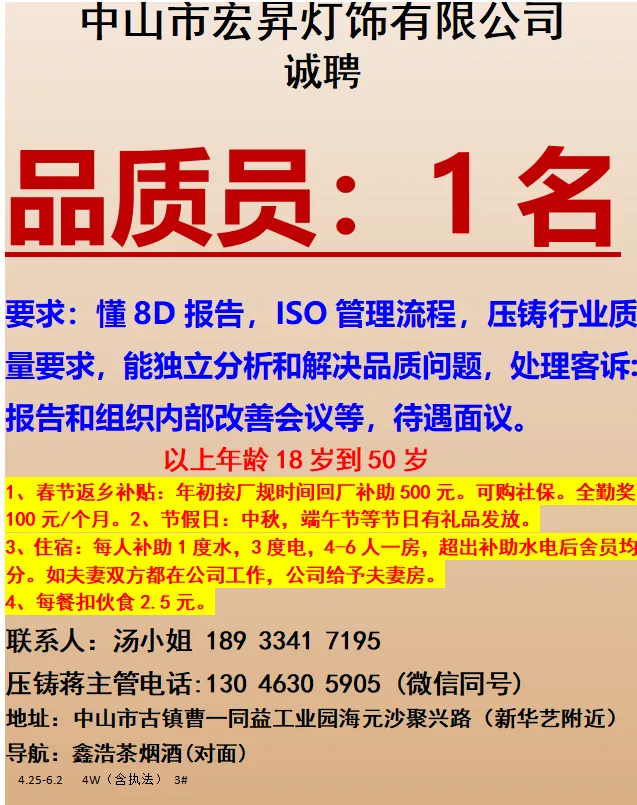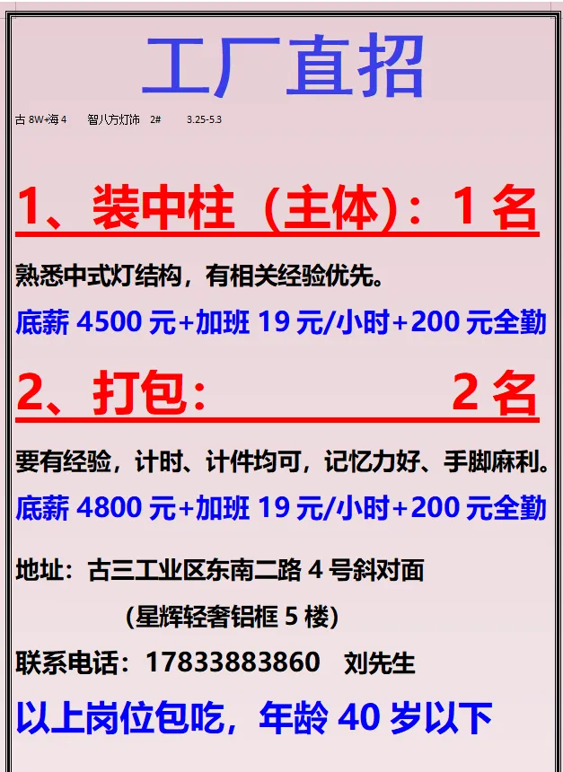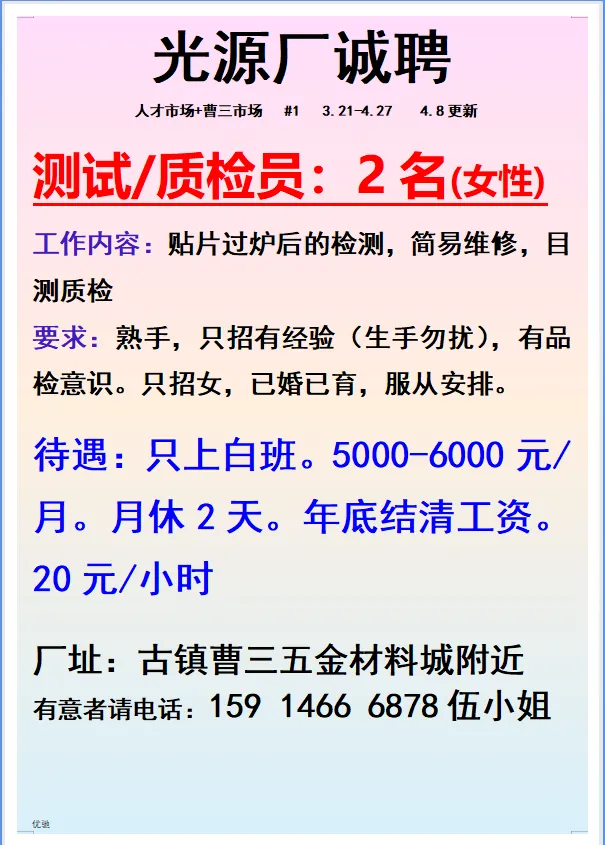 2026年4月25号战狼人才市场最新招聘更新(古镇,横栏、海洲,小榄)