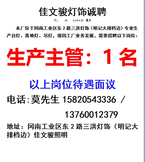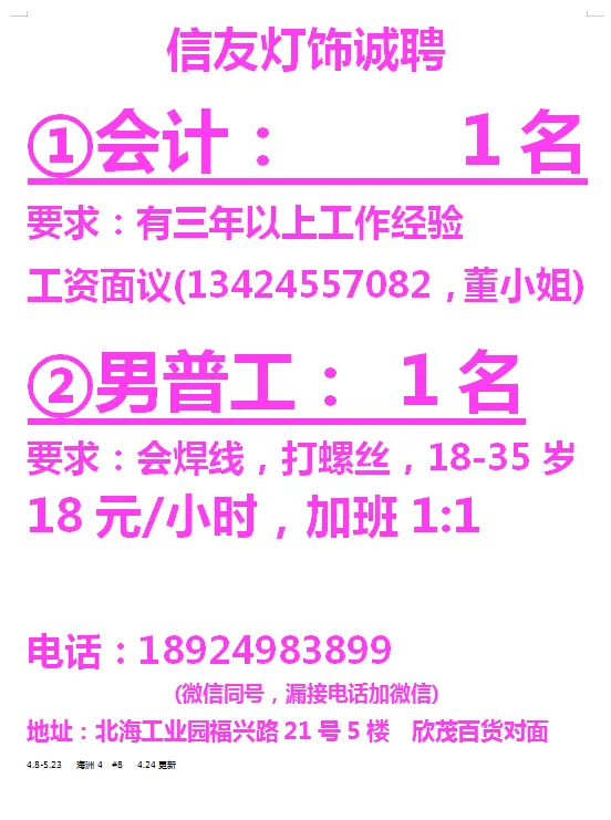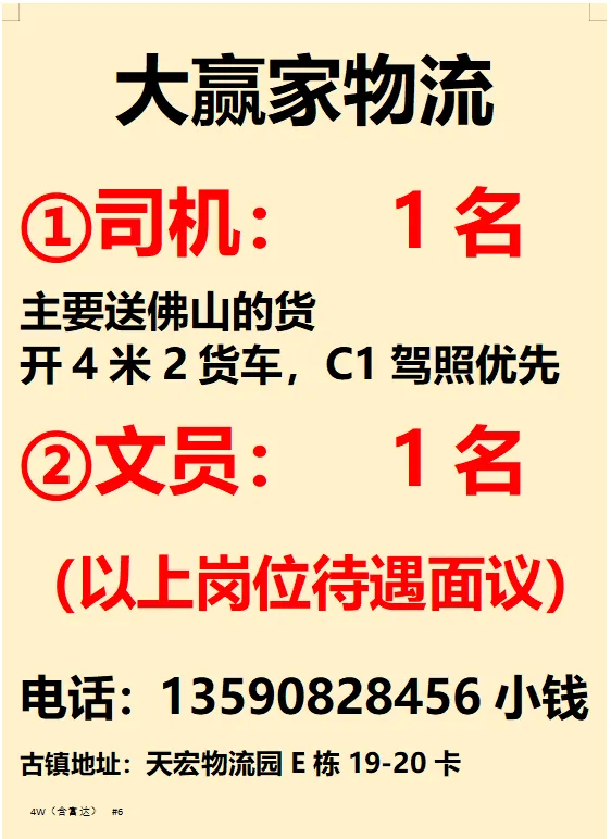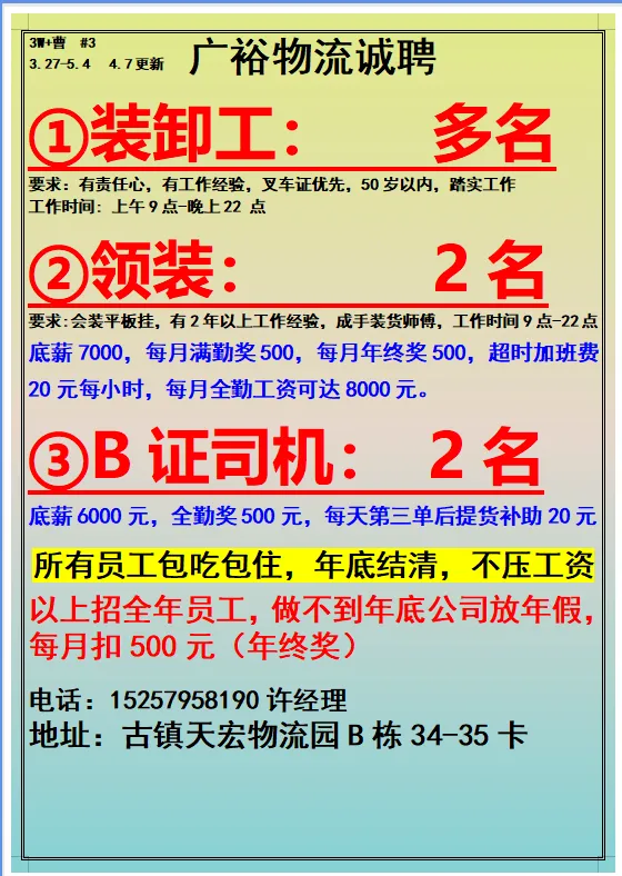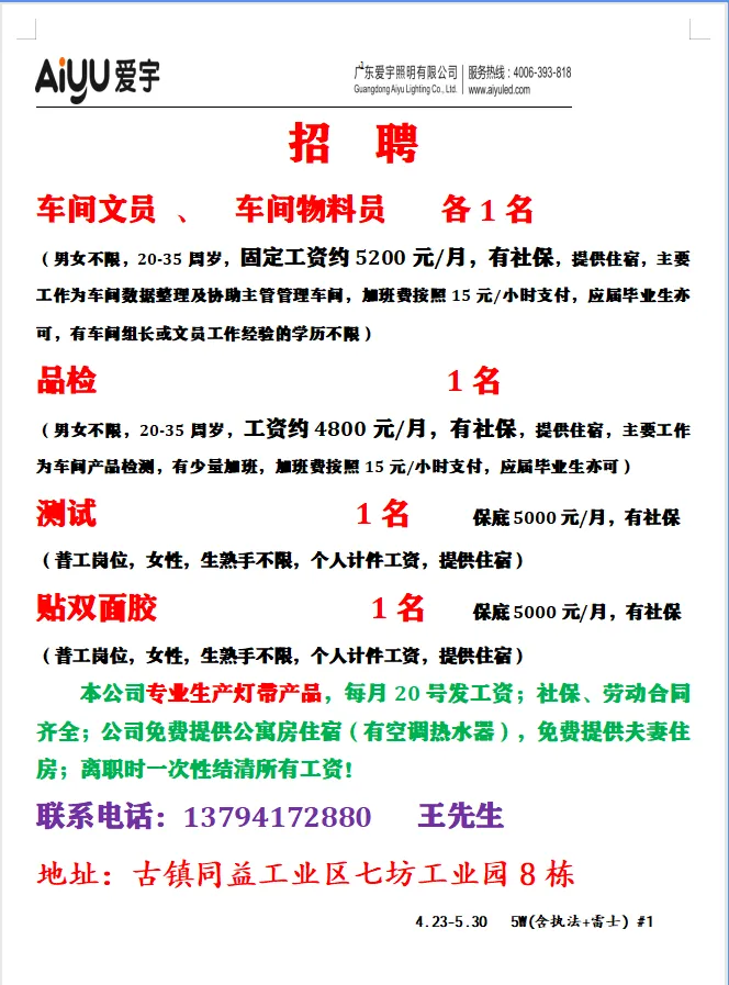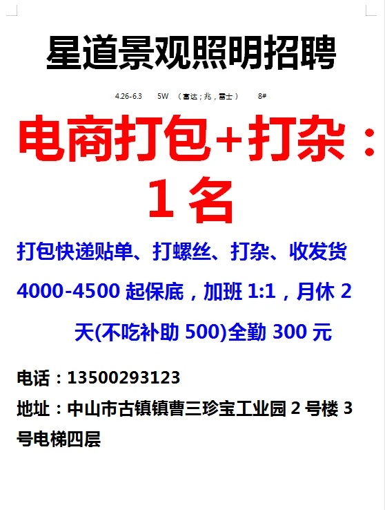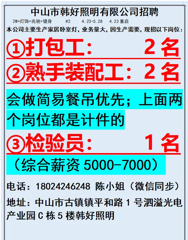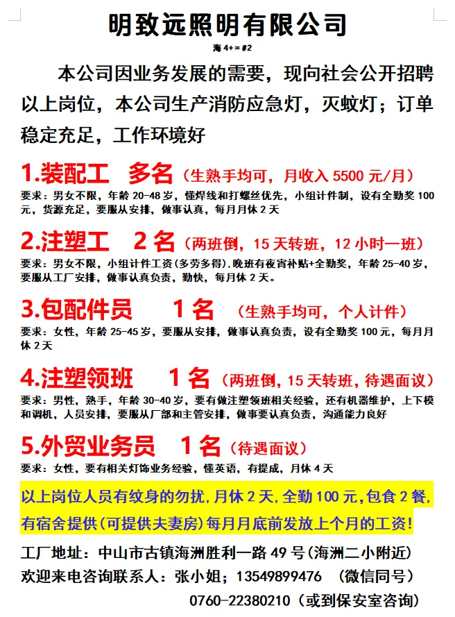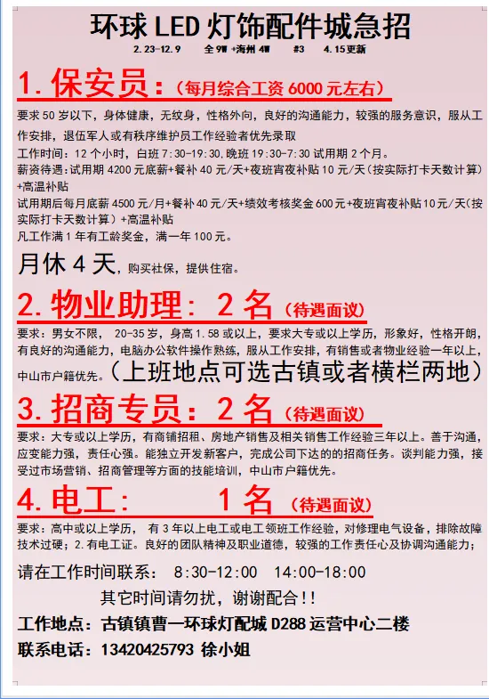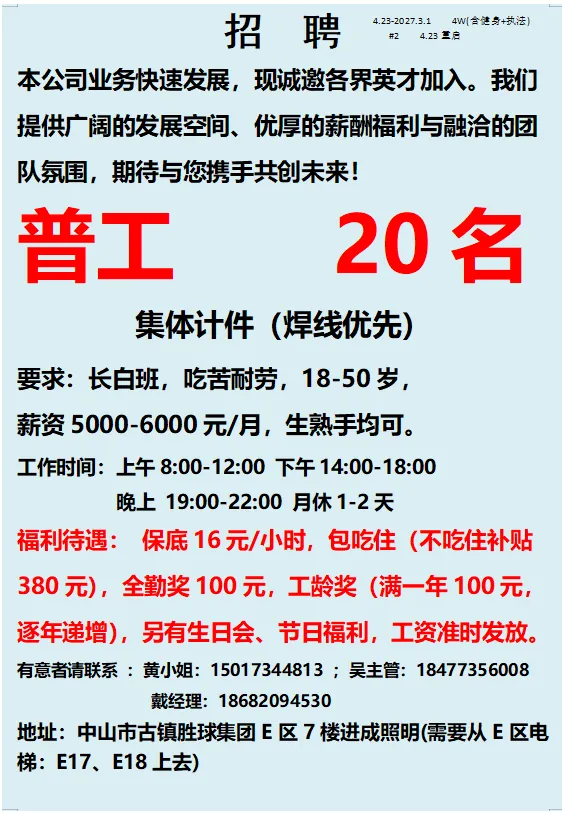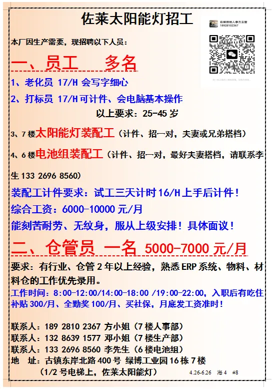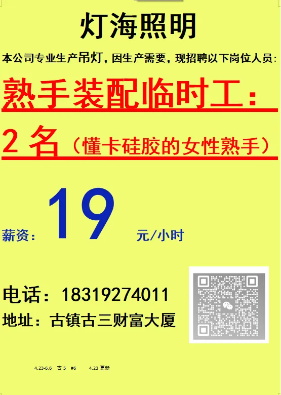 2026年4月23号战狼人才市场最新招聘更新(古镇,横栏、海洲,小榄,港口)