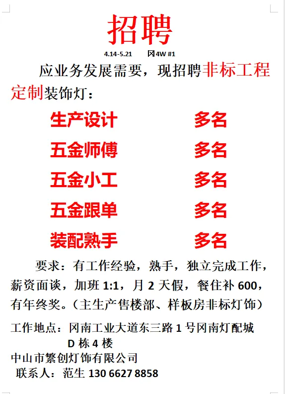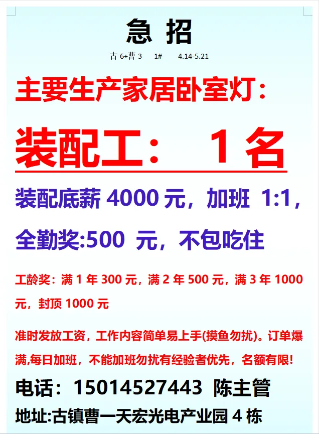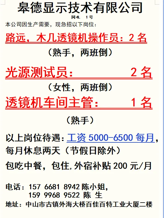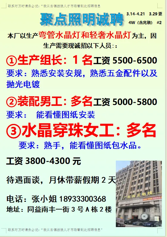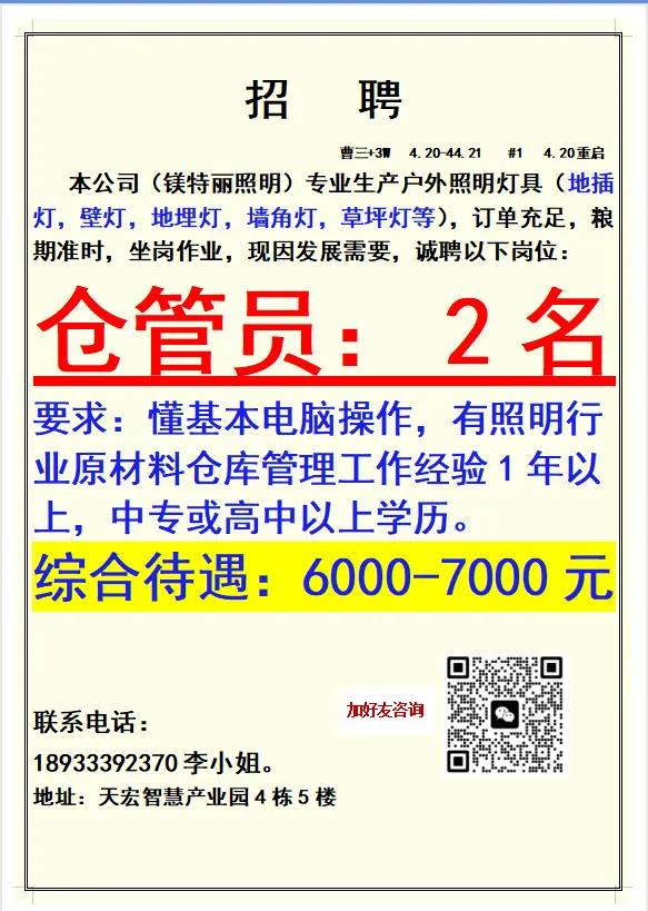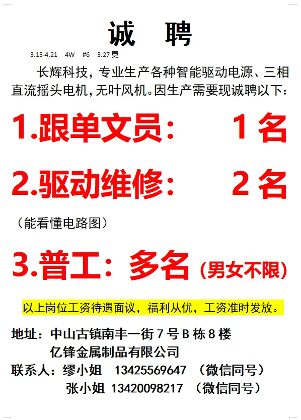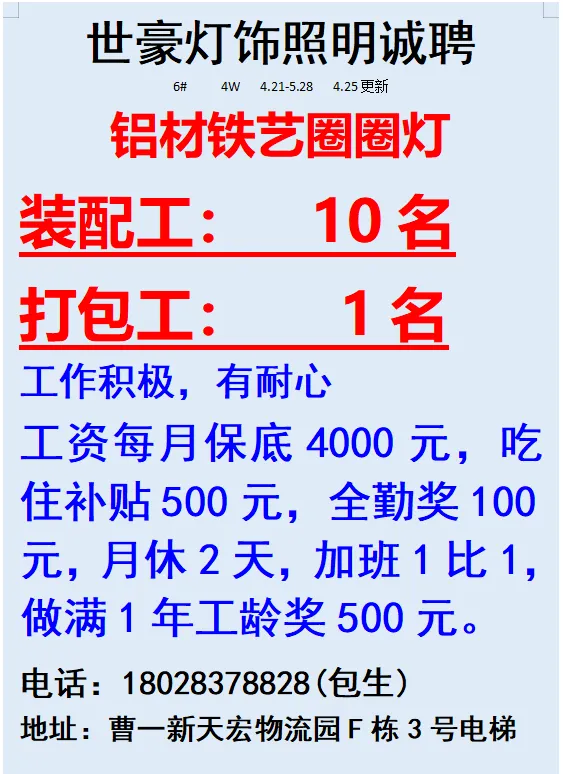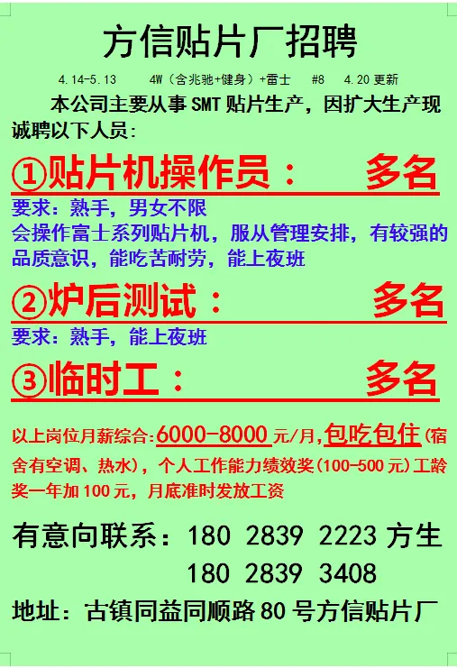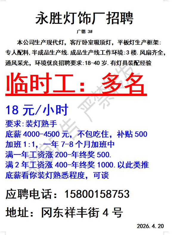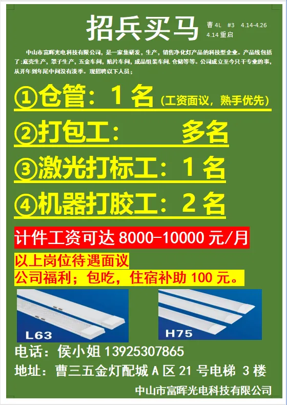 2026年4月21号战狼人才市场最新招聘更新(古镇,横栏、海洲,小榄,江门)