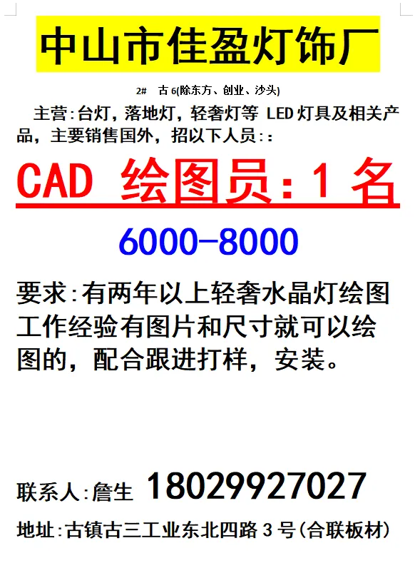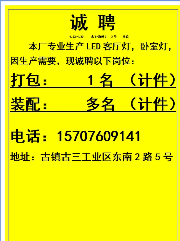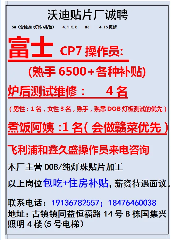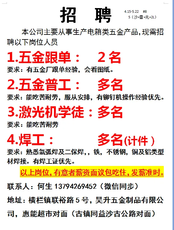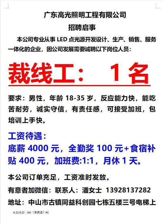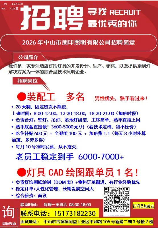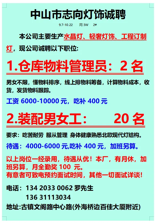 2026年4月22号战狼人才市场最新招聘更新(古镇,横栏、海洲,小榄,江门)