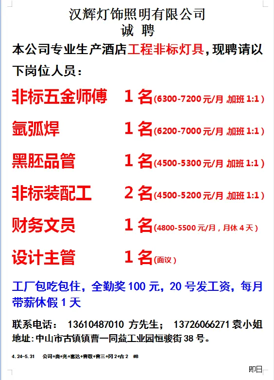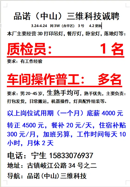 2026年4月24号战狼人才市场最新招聘更新(古镇,横栏、海洲,小榄)
