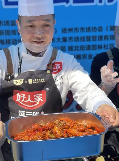天味食品董事、副总裁吴学军和张广兵大厨携手搭档,为市民现场炒制风味小龙虾。“眼下正是吃小龙虾的旺季,我们希望通过公益炒虾的形式,让市民不用费心处理、烹饪,轻松就能吃到餐厅级别的美味小龙虾。”吴学军表示,此次活动以政企联动为纽带,践行公益惠民理念,把美食服务搬进农贸市场,让寻常百姓在家门口就能感受美食带来的快乐,让生活更有滋味、更有温度。