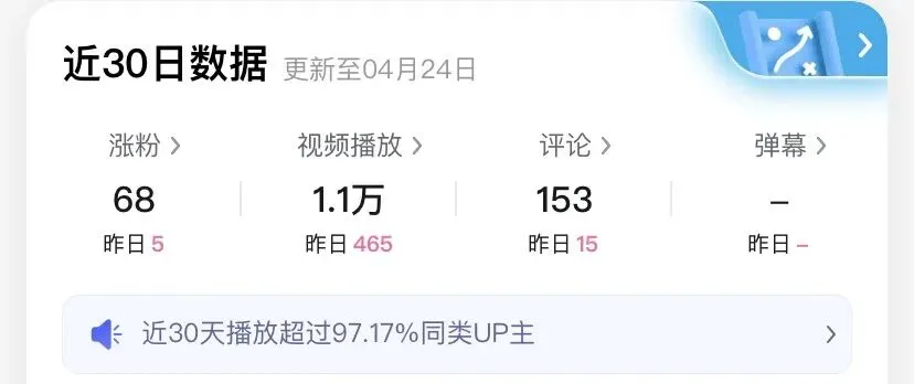 从2026年4月2号开始更新第一个视频,到现在已经更新了18个视频,播放量1.1万,粉丝80个,粉丝中竞争对手6个,纯粉丝占比95%。