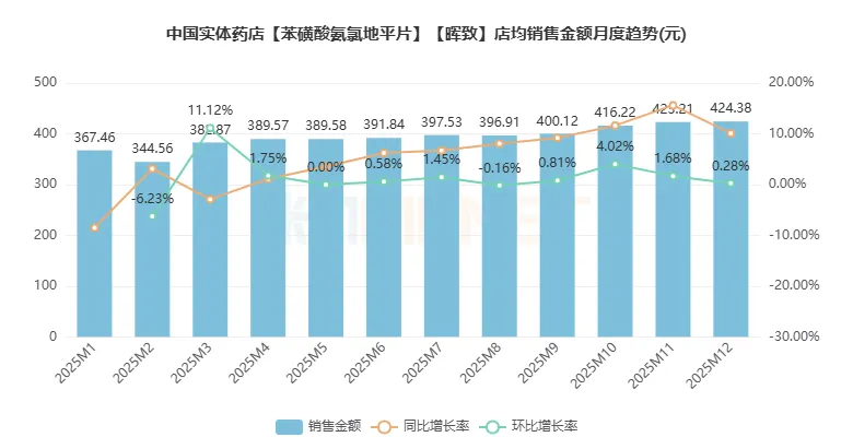 从分月数据来看,2025年络活喜店均销售金额相对稳定,除去1月-2月春节假期影响,3月快速回升,9月-12月均在400元以上,其中12月为最高月份,达到424.38元。