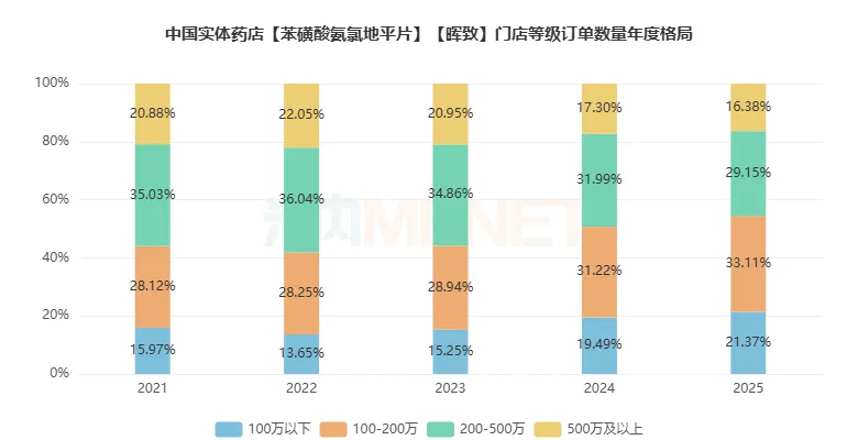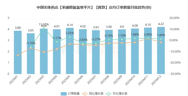 订单数量关联占比亚类方面,络活喜在调节血压类占比最大,2025年达42.48%,调节血脂类、抗血栓类占比均超过5%。