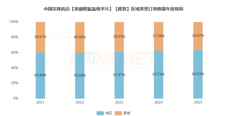 络活喜在订单数量区域类型分布方面,城区的占比在近年呈上升态势,2025年为63.93%。