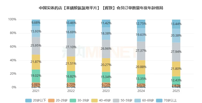 近年,国家密集出台一系列慢病管理政策,相关用药则备受关注。米内网小票格局数据分析结果显示,原研药络活喜在2025年院外零售药店市场的店均销售金额、销售均价、毛利率有所增长,但店均订单数量有所下滑;其消费者以40-69岁人群为主,人均购买频次下降但购买金额提升。从关联购买情况来看,络活喜的购买场景高度集中于心脑血管疾病的联合用药管理,和阿斯利康的瑞舒伐他汀钙片、拜耳的阿司匹林肠溶片搭配联用较为普遍。