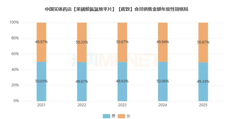 会员性别订单数量分布方面,女性的贡献度较高,2025年占比51.23%。