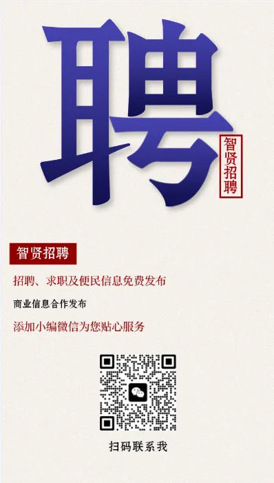 专业的招聘和便民服务掌上信息共享平台,专注于提供优质的招聘岗位和求职信息,免费发布招聘、求职、求助、求租、求购、寻物问事信息,合作发布房屋铺面租售、车辆交易、商业推广等信息。公众号“智贤招聘”、“智卓招聘”,朋友圈微信号“zczp777”、“zczp8888”,发信息请添加小编微信,足不出户,求职招聘触手可及。