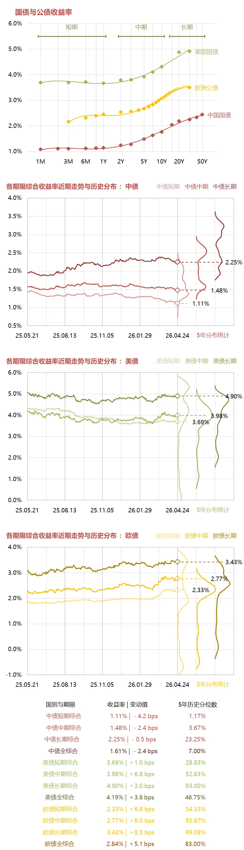 对中国国债、美国国债和欧洲公债的收益率进行分析。