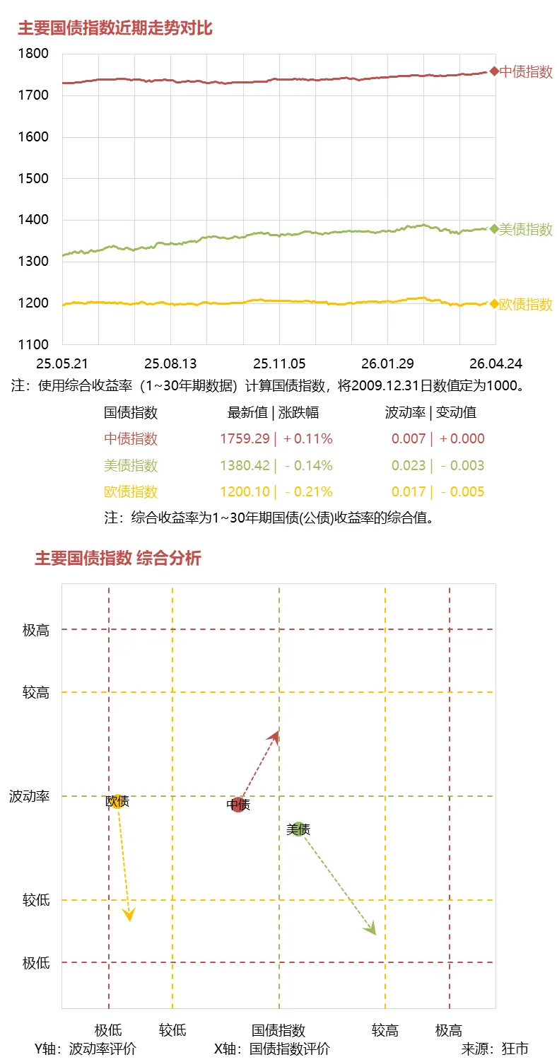 下面第一张图是各国债指数的最近1年的实际走势,第二张图是各国债指数的综合分析: