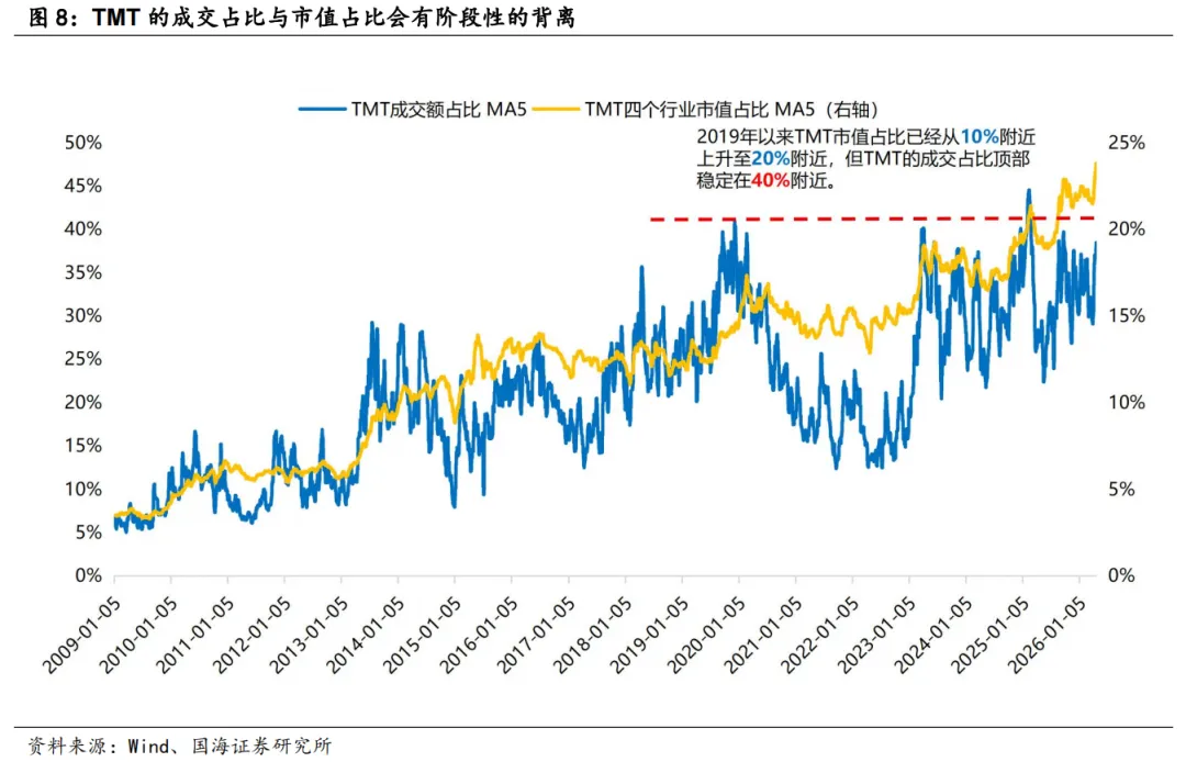 3、如何看待TMT成交占比再度临近高位?(当前38.5%)