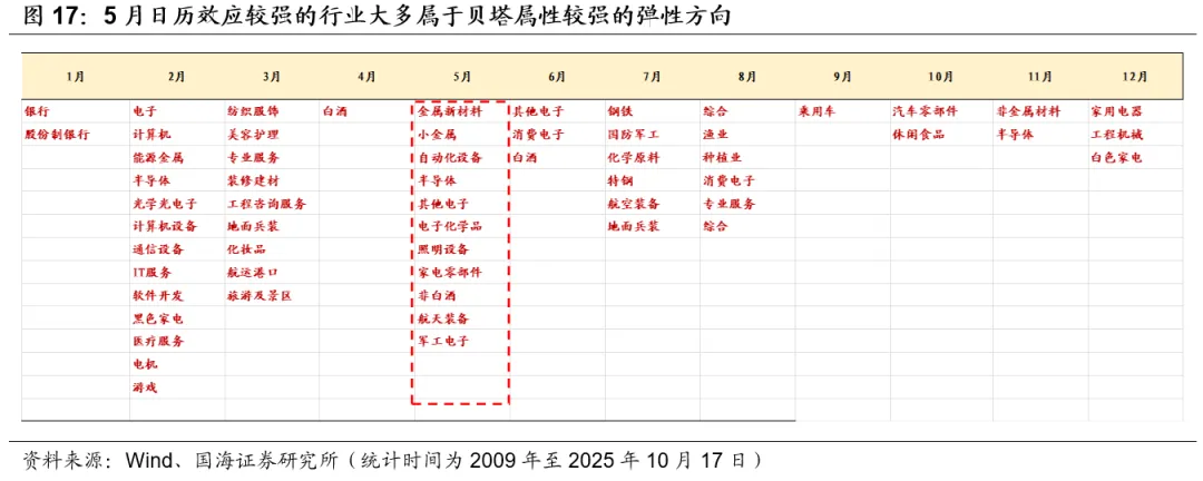 但从2025年四季度以来的市场表现来看,A股行业轮动的日历效应存在“抢跑”现象,提前时间约为半个月-1个月左右。
