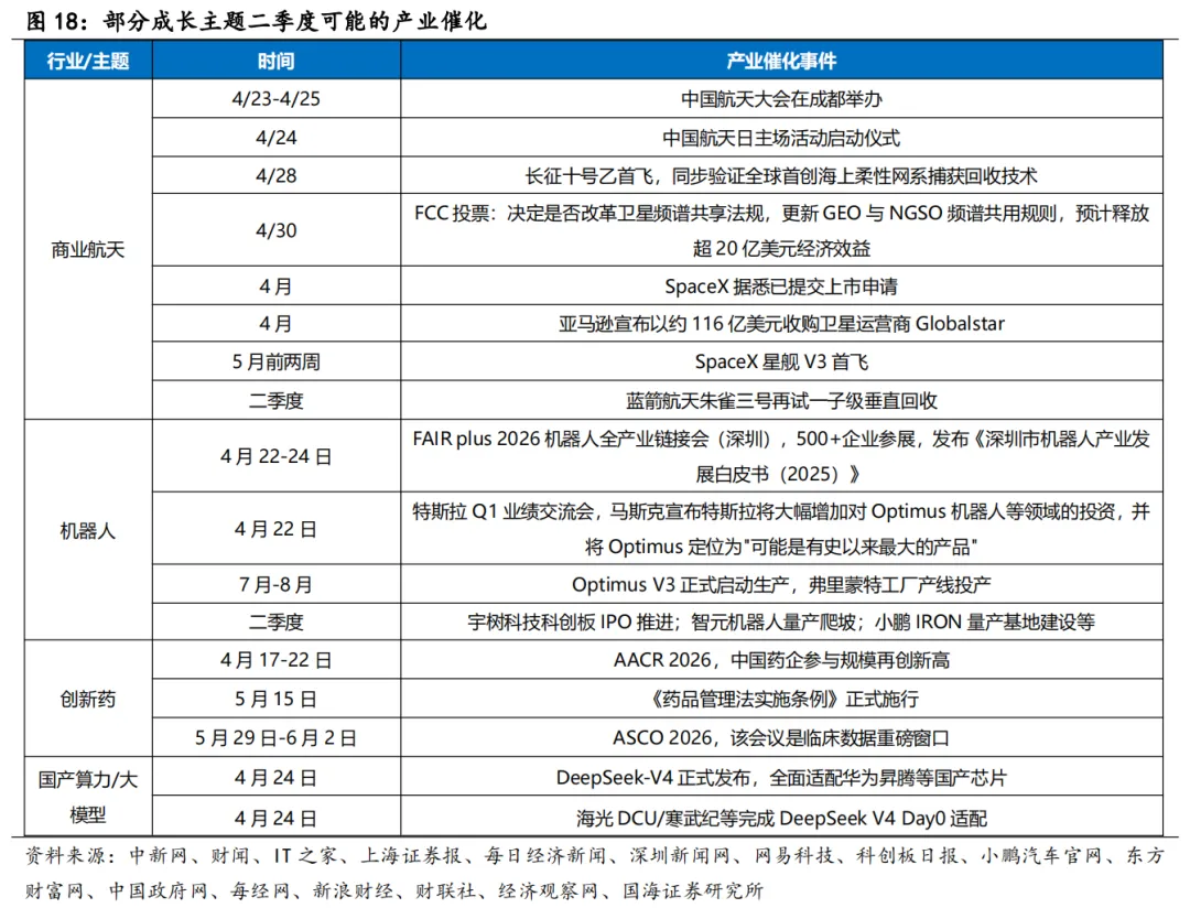 (1)一方面,随着一季报的落地,5月业绩因子会阶段性回落,对应机构重仓股跑赢中证2000的概率也会明显下滑至20%以下(4月是年内最高)。从2026年的情况来看,4月下旬以来基金重仓股相对于小盘股的超额收益已经有转弱的迹象。因此,对于想布局TMT景气方向的投资者,5月可能会出现不错的赔率。