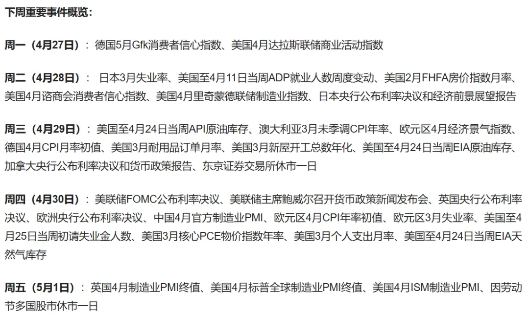 除了美联储之外,欧洲央行、日本央行和英国央行下周也将公布最新的利率决议,投资者将关注各央行行长如何看待中东战争引发的能源价格飙升所带来的影响,以及由此导致未来几个月利率调整的可能性。