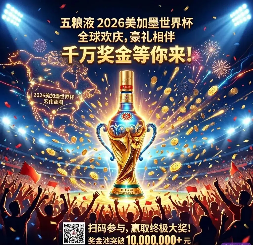 2026年4月20日,作为FIFA2026美加墨世界杯官方联名白酒,五粮液正式启动”猜世界杯冠军,赢五粮液千万奖金”全民竞猜活动,活动周期覆盖世界杯全程至7月20日,总奖池1000万元现金,单个账号最高可获5万元奖金。