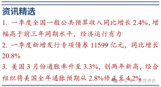 1. 财政部:2026年一季度,全国一般公共预算收入同比增长2.4%,增幅比前两个月提高1.7个百分点,也高于过去三年同期水平,反映出我国经济运行“十五五”起步有力、开局良好。