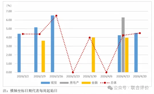 当周中资美元债券发行票息中位数为4.50%,较前一周上升0.25个百分点。其中城投板块发行票息中位数为4.50%。