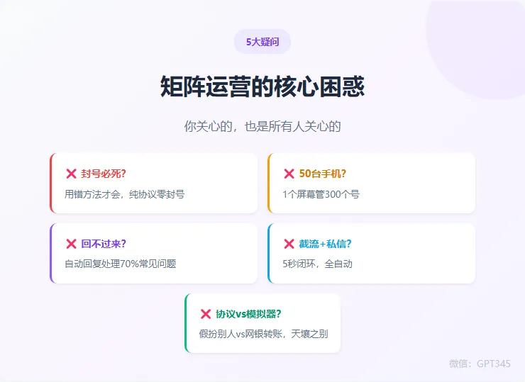 💡 矩阵不是人海战术,是系统思维。没有系统,50个号就是50个炸弹。