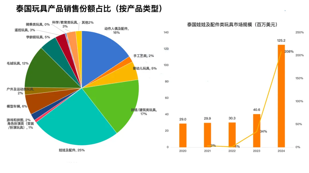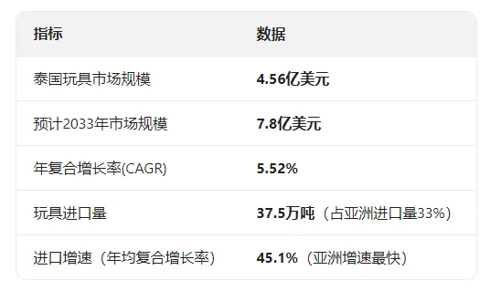 泰国不仅是东南亚玩具消费大国,更是全球玩具进口增速最快的市场之一。从2013年至2024年,泰国玩具进口量的年均复合增长率高达45.1%,远超其他国家。